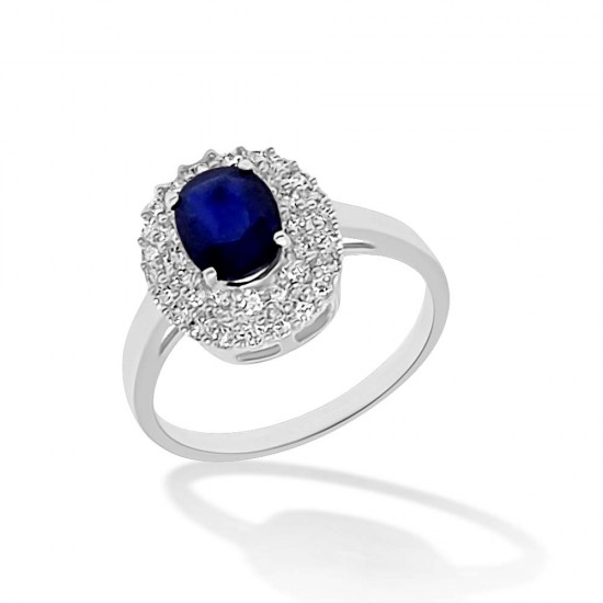 Lenyűgöző kétrészes gyűrűszett, amely a klasszikus eleganciát modern kivitelben mutatja be. A központi négyzet alakú kék zafírt csillogó kristályok halo kerete veszi körül. A széles ezüst sáv további apró kövekkel díszített. Az illeszkedő második gyűrű tökéletes harmóniát teremt. Ideális választás eljegyzésre és esküvőre egyaránt. Ez a set örök szépséget képvisel, amely generációkon át öröklődhet.